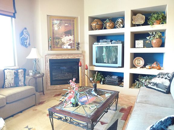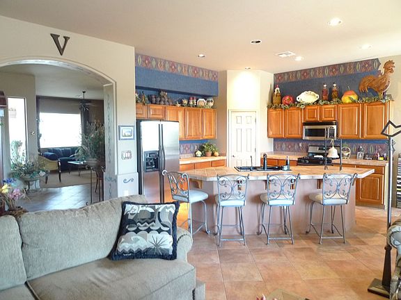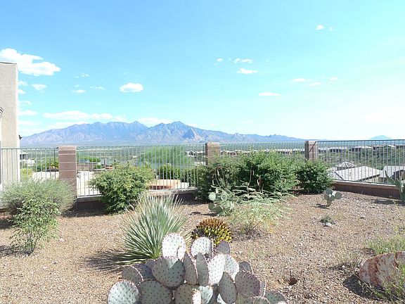 Gorgeous former model home is the star of the neighborhood. It offers the ultimate in the Southwest lifestyle with a resort like backyard that sits high on a bluff with 280 degree views that span East to West. Imagine the sunsets and sunrises you'll enjoy from this prime vantage point not to mention having front row seats to watch the ever-changing Santa Rita Mountains! Prepare to be "wowed" when you step into this beautifully appointed home that is loaded with upgrades. So many extras! 16" tile in all the right places; coffered ceiling in the spacious Den; tiled vanities; huge Master suite w/ sliding glass door & views of the mountains; central vac; & custom window coverings. Kitchen has upgraded appliances, natural cherry cabinets and opens to the great room with a gas fireplace centerpiece. It is not often you can find ideal indoor and outdoor spaces in the same property...this one will exceed your expectations with an outdoor oasis that has a built-in BBQ, pebble tec pool, delightful water feature and breathtaking views from its 12,116 square foot lot. Several pieces of the Sellers furniture, including many pieces that were custom made for the home, will convey with the home with an acceptable offer.