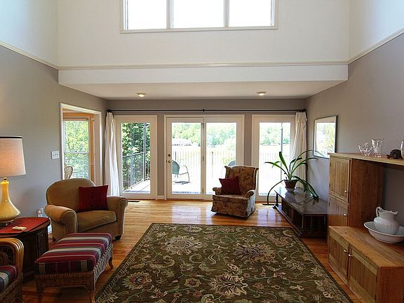 Beautiful lakefront property. Large circle driveway makes it easy to access. Step inside the entryway and you will immediately feel at home. The living room has high ceilings and window doors to access the deck and look out over the marvelous view. Upstairs you will find two bedrooms and a bathroom. There is a loft view which over looks the living room and the lake as well. The basement downstairs is huge featuring a mini bar, bathroom and home office. Gorgeous home!