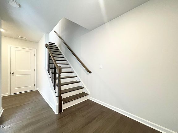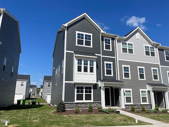 Stunning Brand New 3 story 4 Bedroom 3.5 Bath Townhome End-Unit with 1st Floor Guest Suite, 2 Car Rear Entry Garage, and High-Speed Internet Included in Depot 499 Subdivision, Apex, Available Now! First level offers a versatile first-floor guest suite or office, complete with a full bath with Tub/Shower combo. The second floor main-level features a spacious living room, connecting to a lovely kitchen featuring stainless steel appliances, a gas range, tile backsplash, quartz countertops, walk-in pantry, spacious island with seating and access to a back balcony. The top floor opens to a large primary suite with trey ceilings, a walk-in closet, and a primary bath with a double vanity, water closet, and a glass and Walk-in shower with bench seating and tile backsplash. Additionally, there are two more secondary bedrooms and a laundry area with a washer and dryer included. Window blinds to be installed. 250V EV Charger in Garage!