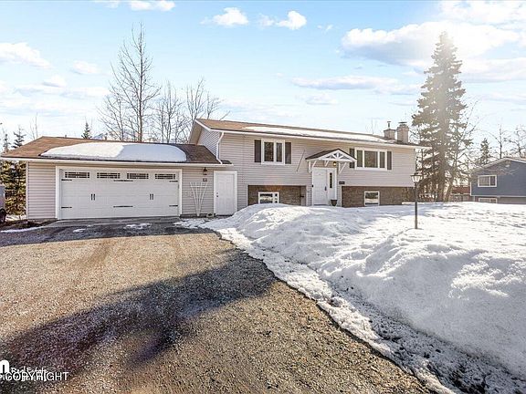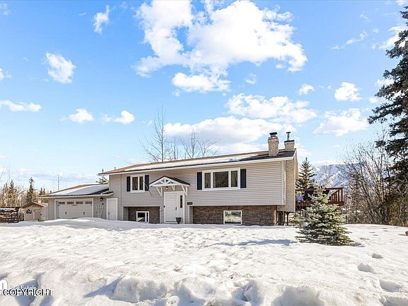 Impeccably Maintained Alaskan Sanctuary with Exceptional Views and VA Assumable Loan.Discover the perfect blend of comfort and convenience in this beautifully updated 4-bedroom, 3-bath home, strategically located for easy commuting to JBER or Anchorage. This property offers two living areas with two bedrooms on each floor, catering to both privacy and accessibility.Impeccably Maintained Alaskan Sanctuary with Exceptional Views and VA Assumable Loan Discover the perfect blend of comfort and convenience in this beautifully updated 4-bedroom, 3-bath home, strategically located for easy commuting to JBER or Anchorage. This property offers two living areas with two bedrooms on each floor, catering to both privacy and accessibility. The heart of the home features a recently remodeled kitchen, and a lower-level bar/game room perfect for entertainment. Comfort is ensured year-round with a fire place on the main floor, a wood stove in the game room and a high-functioning HVAC system for the entire home, all professionally serviced and inspected. Outdoors, experience unparalleled relaxation on the huge deck, boasting stunning mountain views and substantial under-deck storage. The property includes a custom shed for lawn equipment and a woodshed accommodating a cord and a half of wood, alongside ample RV parking. Additional features include a spacious 600+ sq ft heated garage, full-size laundry room, and a discreet in-wall vault/safe space in the guest room. With no HOA, well and septic systems in place, and a VA assumable loan, this home is an ideal choice for anyone seeking both privacy and convenience. The heart of the home features a recently remodeled kitchen, and a lower-level bar/game room perfect for entertainment. Comfort is ensured year-round with two wood stoves and a high-functioning HVAC system, all professionally serviced and inspected. Outdoors, experience unparalleled relaxation on the huge deck, boasting stunning mountain views and substantial under-deck storage. The property includes a custom shed for lawn equipment and a woodshed accommodating a cord and a half of wood, alongside ample RV parking. Additional features include a spacious 600+ sq ft heated garage, full-size laundry room, and a discreet in-wall vault/safe space in the guest room. With no HOA, well and septic systems in place, and a VA assumable loan, this home is an ideal choice for anyone seeking both privacy and convenience.
