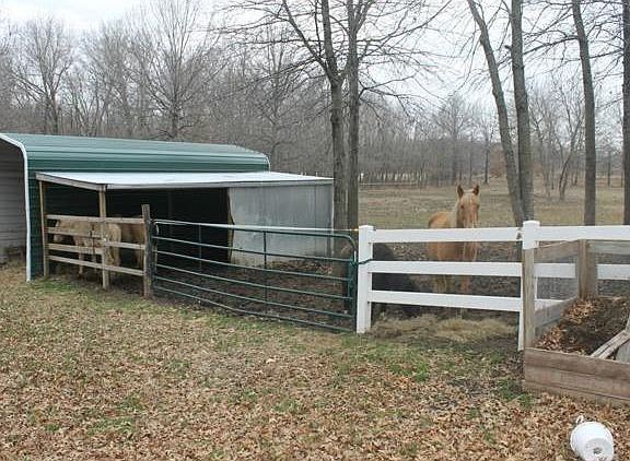 Hunter & Nature lovers Paradise! Perfect for horses: vinyl & electric fencing, outbuildings, creek and pond. Main level is very open with see thru fireplace. Pretty kitchen cabinets with island, 1st floor laundry. 3 bdrms on main level and could have bedrooms downstairs but no egress windows Basement is finished into 3 rooms and bath plus lots of storage. 50 X 36 outbuilding has living quarters w/stamped patio(handicap accessible).Heating registers in apartment have been removed.