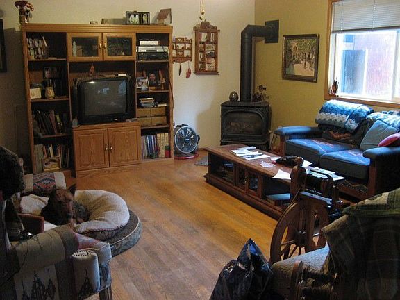 Secluded with space to spread out! 4bedroom 2 1/2bath home with hardwood and tile flooring! Great floor plan, living room with bay window, den, family room, dining & breakfast nook. Free standing gas stove. Fully fenced yard with all the workings of a small farm! Barn with water & power, chicken coup, dog run, fenced and cross fenced. Apple, plum, pear, and raspberries! Absolutely wonderful property!