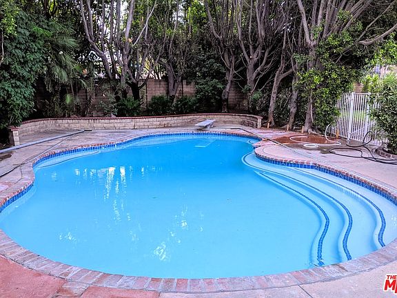 Located at the end of a quiet cul-de-sac, this bright and airy single-story 3,010 SF home sits on a sprawling 17,426 SF lot with a lush, park-like backyard and resort-style pool and jacuzzi. Ornate double wood doors and intricate hardwood floors welcome you inside where you are greeted by magnificent 20-foot-tall cathedral ceilings. The open-floor-plan living room, dining room, and conversation area are highlighted by a massive double-sided fireplace. The kitchen and family room share a wood-paneled wetbar. The master suite features a walk-in closet and en-suite bath with double sinks, soaking tub, shower, and access to the backyard. Other amenities include a 3 car garage, multiple storage sheds, dual AC units for the North and South wings of the house, alarm system, and a house-wide backup lighting system. The bedroom and bathroom off the kitchen have a separate entrance, perfect for maid's quarters or Airbnbs. Walking distance to Northridge mall, award-winning schools.