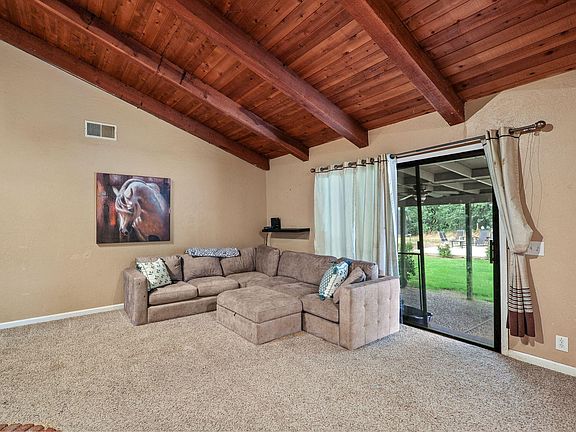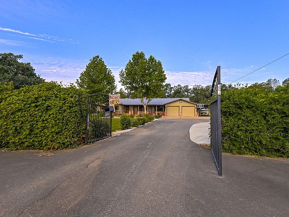 Welcome to your own private sanctuary! Nestled on 2.5 acres of picturesque countryside, this property w/ OWNED SOLAR offers a quiet, end of the road location and gated entrance for ultimate privacy and security. A welcoming front entry, vaulted ceilings with exposed beams, separate living and family rooms and cozy wood stove create a spacious and inviting atmosphere. The entertainer's kitchen is equipped with SS appliances, large center prep island w/ breakfast bar and ample storage. Outside, you'll enjoy the mature lush landscaping, beautiful shade trees and plenty of space to entertain friends and family. This country property is a true gem!
