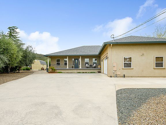 PANORAMIC TRANQUILITY! Spacious & unique executive style home with 9 foot ceilings and crown molding throughout. Fireplace and large windows for natural light & high end custom touches is sure to impress & inspire. Enter into the flowing Hickory hand scraped floor plan with living & dining room views & open concept design. Kitchen is a chef's dream with custom maple cabinetry, pantry and granite tops including an oversized serving/food prep bar with additional sink, touch faucet and high end Frigidaire appliances. Access the rear patio with its beautiful valley and mountain vistas. Overlook your own scenic back yard from the lovely breakfast nook area in the kitchen or two outer bedrooms accessing the back deck. Amazing single level custom home was built in 2003 with 3 Large Bedrooms, 2 1/2 Bath, 2,460 square feet, .57 acre parcel in quiet Cul-de-sac with green belt in back. The magnificent master bedroom completely takes the entire single end of home adding privacy separate from the other large rooms at opposite end. Enter your large walk in closet and grand spa like bathroom. Soak in the jetted jacuzzi tub or enjoy the rainfall shower head for two in this large shower stall. Wakeup to amazing hill side sunrises and sip coffee accessing the lovely rear patio with nature and its beautiful valley & mountain vistas. Kids, Guest or even an office is easy with two large bedrooms available allowing room for any furniture accommodations. Sharing a large bathroom between the two. This home is setup for any occasion, elderly, family or vacationing airbnb environment. Wide hallways for wheelchair access, lower light switches and larger bedroom doors for easy access. Fold out handicap seating in the large guest shower for two. Lot's of specialty LED lighting throughout entire house and a country feel getaway with heating and air conditioning. Custom tiled countertops and flooring throughout bathrooms and laundry room. Add in a oversized fully insulated 3 car garage with 13ft high ceilings lined with maple cabinetry throughout. Custom counter tops, interior work-shop, sink and vanity with private entrance to large guest room. Separate heating A/C or ceiling fans when you enter this attached garage that has room for expansion or another bedroom or office. Don't forget the separate large 10x20 tuff shed for your golf cart, motorcycle, misc storage or shop. Fully functional flat lot with long driveway lined with producing Olive trees. On site boat, RV or motor home parking with hookups. Plenty of room for expansion or even a second story for those wanting more. Heavy duty concrete Foundation built throughout with 2x6 exterior walls for future expansion options. Add second floor option if ever desired. Build a 360 view in-law unit above garbage area or inside if desired. Plenty of easy parking for those special occasions or get togethers. This home is a MUST SEE. Gather for holidays, work from home & live your best life here! Hidden Valley Lake subdivision amenities include: Beautiful private swimming lake recently stocked for fishing, Olympic sized pool, 18 hole championship golf course, horse stables, dog park, tennis courts, restaurant and lounge, nearby schools, shopping, new developments taking place around this location and so much more! Just 20 miles from Calistoga and Northern California's lovely Napa Wine Country and 40 miles from Santa Rosa. Take day trips to different lakes, drive Silverado Trail, visit local wineries; so much to enjoy, visit and do! Be a part of this growing and expanding beautiful area!