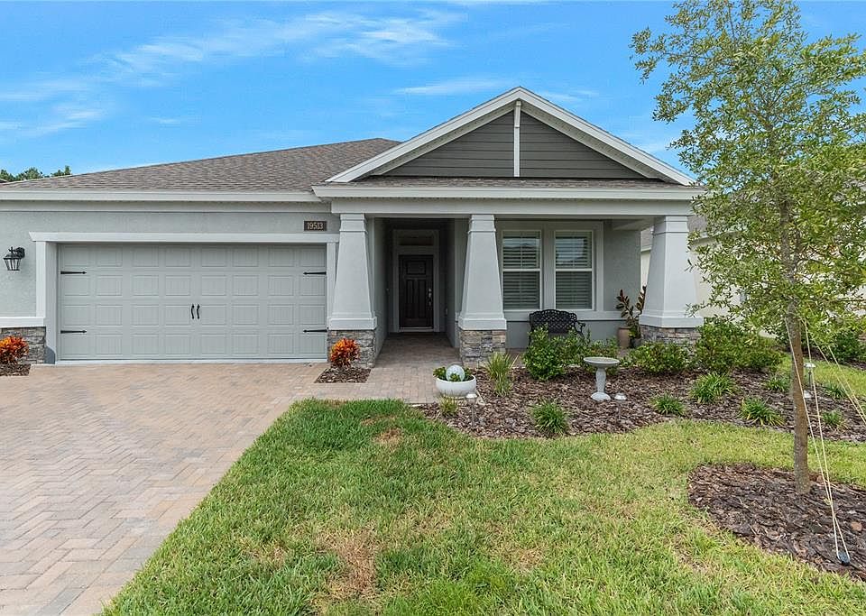 This beautiful custom Inland home was constructed in 2021. Located on a rare premium homesite with pond views. The Cascades of Southern Hills is an active 55+ community. The low HOA fee covers irrigation, as well as mowing, mulching, and trimming the landscaping, along with cable and internet. This modern-designed floor plan has an open-concept layout that offers ample space. It has many custom upgrades, including ceramic tile, upgraded light fixtures, and ceiling fans. With two generously sized bedrooms plus a flex room with a door that is currently used as a bedroom but can be used as an office or den. With two full baths and a two-car garage, there's plenty of room to grow in this home of nearly 19,000 square feet of living space! The home has many luxury features you will notice immediately as you walk into the wide-entry foyer with a soaring ceiling. The floor plan is open to the dining, kitchen, and great room, all overlooking the large, covered, screened-in lanai. The great room is situated just off the kitchen, with sliding glass doors leading to the lanai. The well-appointed kitchen is sure to impress with stainless steel appliances, including a hood vented to the outside, an upgraded gas convection range, beautiful granite countertops, 42-inch cabinets, a walk-in pantry, and a huge island that offers additional counter space and seating. The owner’s en suite is spacious and offers a large walk-in closet, dual sinks, vanity storage, and a large, tiled shower. The upgraded elevation is craftsman style with stone and upgraded lighting. Enjoy all of the new resort-style amenities, clubhouse, pool, exercise room, pickleball, and more! If golfing is your hobby, an optional membership can be obtained to utilize the golf club next to the Cascades at Southern Hills Plantation. You'll love it here! Convenient location to all amenities and only 45 minutes north of Tampa.