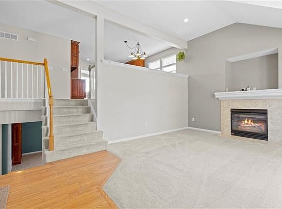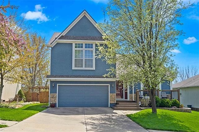 This beautiful 4 bedroom, 3 bath home offers lots of living space both inside and out. You will love the custom cherry wood cabinets, quartz countertop, stainless steel appliances, and deck access from the kitchen. The living room and master bedroom have high vaulted ceilings. Master bathroom has cherry wood custom double vanity, tile floor, jetted tub, and large walk-in closet. Finished lower level includes plenty of storage plus a bedroom, full bath, and second living area that walks out to a beautiful custom patio and deck. The 6ft wood privacy fence makes the yard feel a part of the house. Other features are in-ground sprinkler system, main level laundry, whole home humidifier, gas fireplace, and no neighborhood HOA. Home is located in the award-winning De Soto school district close to highways, parks, and Mill Creek trails. 2021-05-12