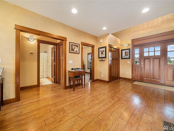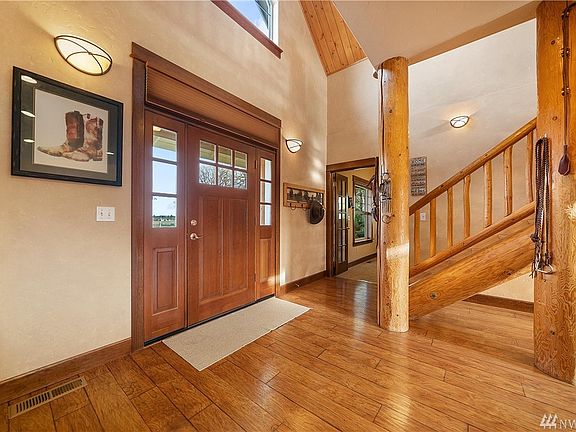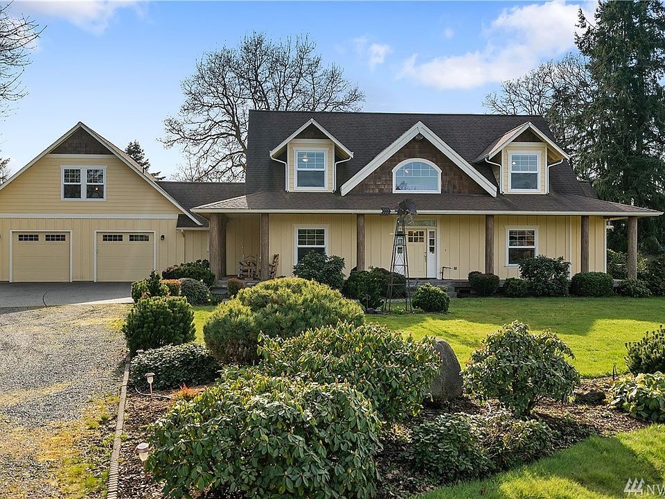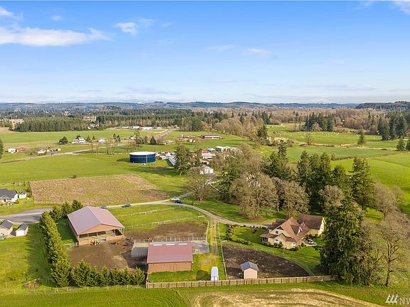 Enjoy the beautiful view of Mt. Rainier from this stunning equestrian property on just shy of 5 acres. Custom built home features 3085 SF, 4 BR's (main floor master) 3 BA's, office & a 500 +SF bonus room above the garage. Vaulted ceilings w/ T&G ceilings, log staircase leads to the upper loft area. Property includes a 4-stall barn, tack room, wash rack, large equipment storage area/shop; a 60x100 covered arena w/metal roof; 6 pastures; Gallagher EquiFence; & a 50KW whole property generator.