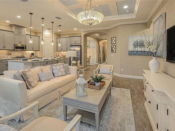 Under Construction - The Farnese home by Taylor Morrison offers style on the outside and luxury within. The main living area holds open kitchen and great room area, breakfast nook and separate den with pocket doors for privacy, a designer kitchen with large island and pantry, upgraded white cabinetry, quartz counter tops and natural gas stainless steel appliances. The master suite features a large spa shower with upgraded decorative tiles, white cabinetry,granite counter tops, separate linen closet and walk-in closet. Two spacious secondary bedrooms each with their own bathrooms. This house features ten foot ceilings with crown molding. Outside features a covered lanai for outdoor living with a rough-in for a future outdoor kitchen and 80Amp pool/spa pre-wire. See what your life could look like in a new luxury home within this Ft. Myers community. Call to schedule an appointment today. Photos are of model, not actual home.