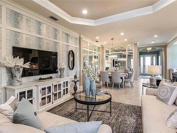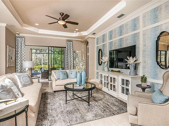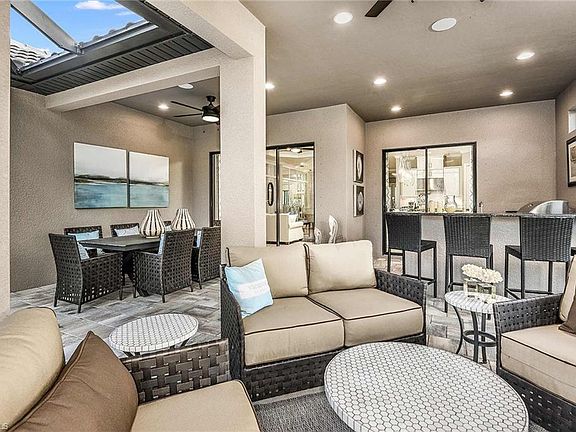Under construction - The Lazio home by Taylor Morrison offers style on the outside and luxury within. The main living area holds open kitchen and great room area, separate dining area and den. A designer kitchen with large island and pantry, upgraded white cabinetry, granite counter tops and natural gas stainless steel appliances. The master suite features a large spa shower with upgraded decorative tiles, white cabinetry, granite counter tops and walk-in closet. A spacious secondary bedroom with its own bathroom. This house features ten foot ceilings with crown molding, tray ceilings in the master bedroom and great room. Outside features a covered lanai for outdoor living with a rough-in for a future outdoor kitchen and pool/spa pre-wire. See what your life could look like in a new luxury home within this Ft. Myers community. Call to schedule an appointment today. Photo is of model, not actual home.