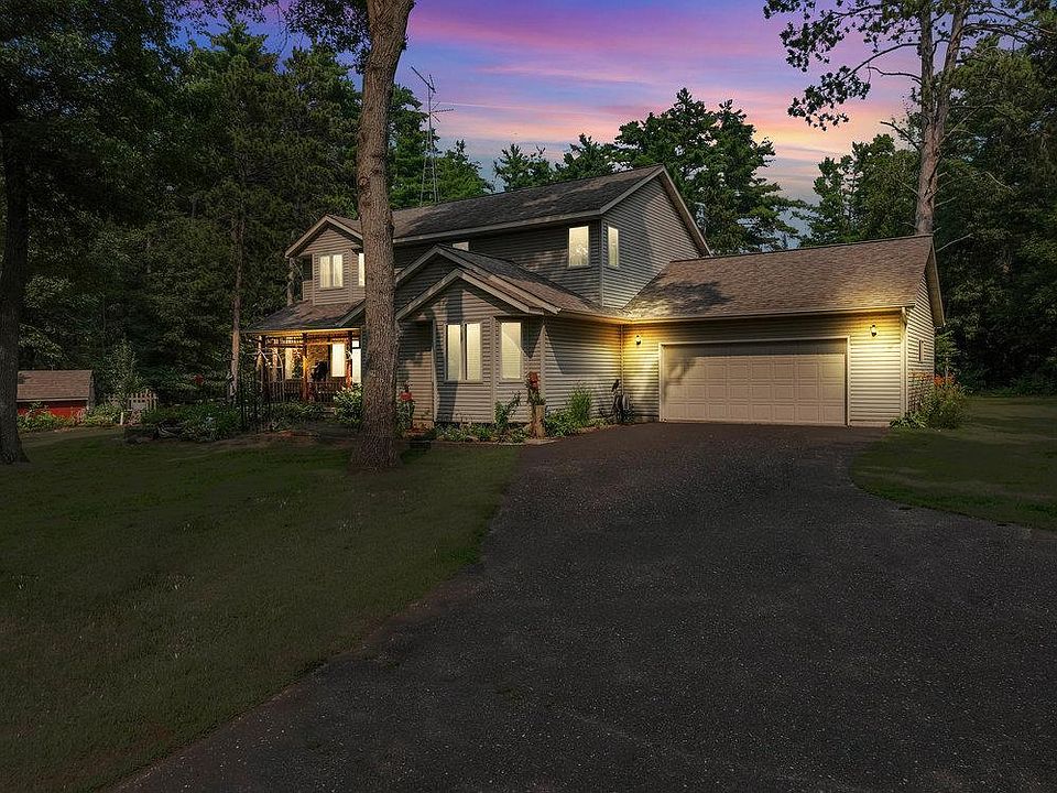 Step into autumn in this charming 2-story colonial with custom woodwork throughout. Tucked on 1.56 wooded acres, just minutes from the Red Cedar River and Sawyer boat landing, this one-owner home, built in 1999, offers the perfect blend of country privacy and convenience. Upstairs, find 3 spacious bedrooms, including a master suite with private bath. The main floor includes a cozy living room with wood-burning fireplace—ideal for chilly evenings. A sunlit office with built-in cabinets, a spacious kitchen/dining area with patio doors leading to the deck, and convenient laundry and 1.5 baths complete the layout. The finished lower level includes a family room and game room, perfect for seasonal gatherings. Outdoors, enjoy morning coffee on the front porch, surrounded by fall colors and vibrant gardens. A heated 2-car garage and 28x54 heated shop with 3 garage doors provide ample space for projects and hobbies. Country living at its finest!