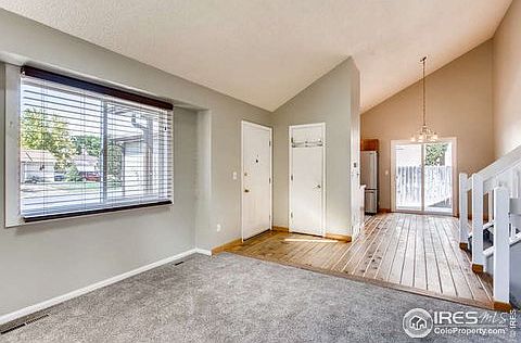Check out this great 3 bedroom, 2 bath home with a 2 car attached garage conveniently located near Hwy 34, shopping and bike trails. Enjoy the open space, vaulted ceilings, 2 bedrooms upstairs and 1 in the garden level basement with 2 full bathrooms. Washer and dryer stay! Outside there is a fully fenced backyard, extended concrete patio and gazebo. New carpet throughout. Make a few changes and make it your own! Check it out today.