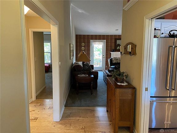 Desirable 4 bedroom, 3 bath custom built ranch with full basement in the middle of Beavercreek. When you walk in the door of this one owner home you immediately can tell it has been lovingly taken care of. Three bedrooms on the first floor with split floor plan and the fourth in the lower level with a full bath. Large master with two walk-in closets. Many updates including new shower and high toliet in the master. Pull out shelves in lower kitchen cabinets, corian counters, flooring in the great room, entry, kitchen and basement rec room. Added window to basement rec room, under counter lights in kitchen. Large ceiling high windows in the kitchen adding lots of natural light. Breakfast bar. Inviting front porch and an elevated deck overlooking the treed backyard. Garage door is oversized at 18' wide. Open concept floor plan. Great location not a through street. Private but close to all amenities. Come see your new home today.