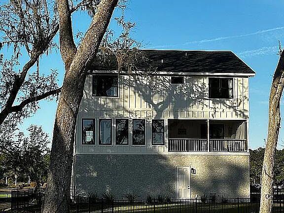 Custom Coastal Creek Construction home featuring four bedrooms and three and one half baths overlooking the 16th green of the Sanctuary Golf Club (sanctuary golf club) and the marsh beyond. Completed in December 2024 with fenced back yard for pets, two electric fireplaces, screened back porch, wide LVP flooring throughout, elevator to main floor and much more. Walk to the golf clubhouse for your tee time, lunch or an afternoon cocktail.. HOA dues of $100 per month cover all road maintenance as well as amenities that include pool, tennis/pickleball courts, River House, and work out facility. Call (828)775-3774 for additional information.