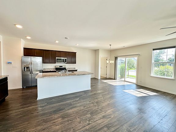 Stunning!! Welcome home to this upgraded & move-in ready, better-than-new townhome in Carillon at Cambridge Lakes Active Adult Community! This desirable open concept Chandler model has 2 bedrooms, 2 full baths, a large direct-access 2 car garage and 9' ceilings. The luxurious kitchen features stainless steel appliances, designer Sarsaparilla cabinets with crown molding, large kitchen pantry, and expansive island overlooking the great room and dining area. Wood laminate flooring in the kitchen, living room, dining room and hallway. Primary bedroom suite with large private bath featuring dual bowl vanity, linen closet, and stand alone shower. Washer and dryer in the separate, enclosed laundry room w/ extra custom storage cabinets, and so much more! Professionally landscaped end unit location. Carillon at Cambridge Lakes is a Resort Style Active Adult Community with a 30,000 sq ft clubhouse featuring an indoor and outdoor pool, fitness center, tennis and pickle ball courts, bocce ball courts, a billiard room, craft and card rooms, a 3 hole golf course and a full time lifestyle director! Lawn care and snow removal are taken care of through the association. Don't delay - see it today and start living the exceptional Carillon lifestyle!
