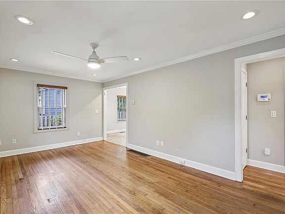 This charming cottage is a 3-bedroom, 1-bath home that blends classic character with modern touches. Featuring hardwood floors throughout, a renovated main-level bathroom, and a bright kitchen with stainless steel appliances and granite countertops. The kitchen opens to a spacious deck, perfect for entertaining or relaxing with morning coffee, overlooking a fully fenced backyard with a wooden privacy fence. Upstairs, the space is plumbed and ready for a second bathroom addition, offering room to expand. Zoned OI (Office-Institutional), this property allows for residential use as well as certain commercial opportunities, ideal for those seeking a live-work setup or investment flexibility. Conveniently located near downtown Chamblee, Brookhaven, and major highways, this home offers both lifestyle and opportunity in one inviting package.