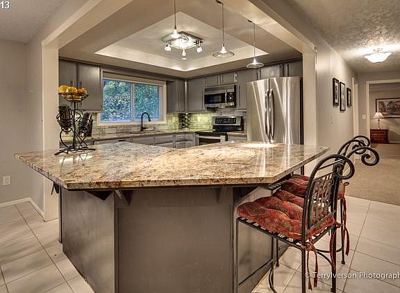 This is a well kept secret, 1/3 acre lot, fully fenced, with park and shopping close by. Fresh interior paint, new carpet, great tile floors, 2 fireplaces,3 full baths have been redone. 2 covered patios along w/fabulous downstairs with bar makes this a great entertaining home. Master bdrm suite is oversized, laundry room is HUGE. Could be separate living downstairs. Great floor plan w/easy living on 2 levels.