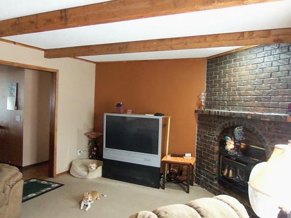 $25,000 PRICE REDUCTION. Ranch Home on 1 acre. LV Room features Wood Beams & Wood Burning FP Insert. All newer kitchen appliances are nego. Large Formal Dining Room has lots of windows & walks out to deck overlooking fenced backyard. Full basement has newer paint, carpet, lots of storage & 2 sump pumps. Family room 22x13 & non-conforming bedroom 18x10 in LL are waiting to be finished. New water heater & HVAC in 2013. 34X33 Barn has 2 large sliding doors&concrete floor. SOLD AS IS. Seller will make no repairs.
