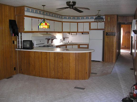 Nice Country setting on 2 acres not far from Fisher Lake. This mobile home has been well maintained and is ready to move in. Offers 2 Bedrooms, 1 full bath w/washer & dryer hook up plus 1/2 bath. There is an open concept Living room and kitchen w/eating area & snack bar plus a 3 season porch on the front and deck on the back. The paved driveway leads to the nice 24 x 32 detached pole barn style garage w/cement floor and electric w/10x14 enclosed lean-to on the back for additional storage needs. Also included is an 8 x 12 storage shed.