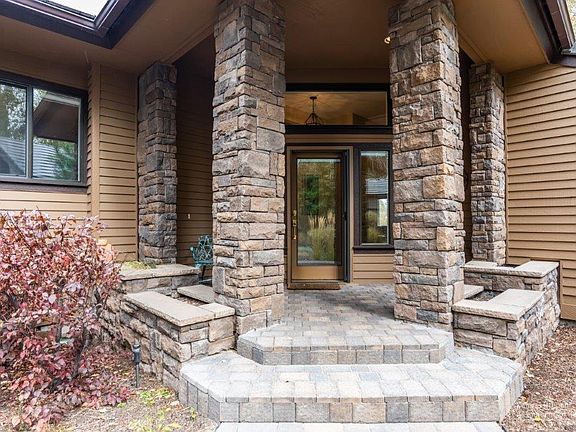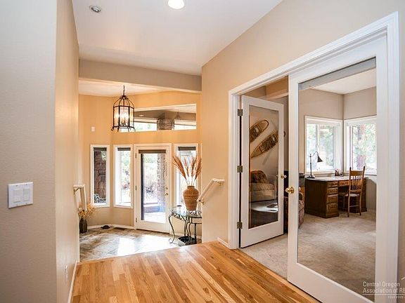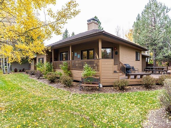 SINGLE LEVEL in The Woods at Broken Top overlooking common area and a park. Kitchen remodel to include cherry cabinets, quartzite counters, tile backsplash, stainless steel appliances, island and walk-in butler's pantry. Enjoy the dining area with a built-in buffet and living room with modern gas fireplace. Master bedroom with coffered ceiling and door to deck. Remodeled master bath has quartzite counters, dual vanities, tiled walk-in shower, tile floors, free standing soaking tub and a walk-in closet. 3rd bedroom has French doors and is perfect for an office. Forced air gas heat/AC. Covered back deck overlooks green space creating a private setting. Extra deck space and potential fenced dog run. Oversized 2 car garage and 13 x 18 attic storage with pull down ladder.