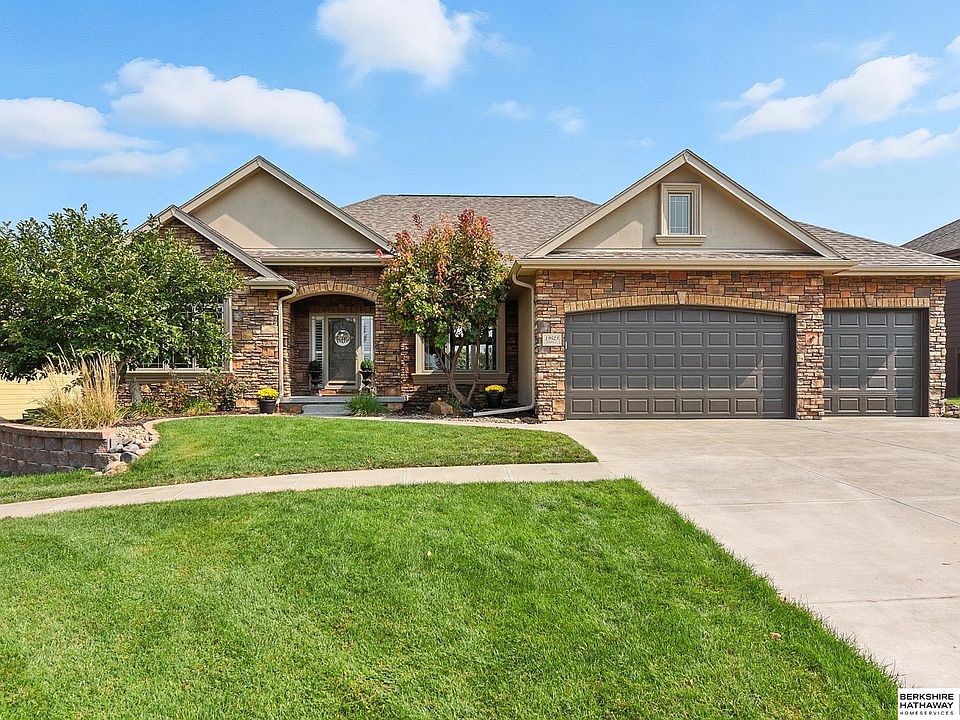Amazing Bellbrook 4/5/3 walk-out ranch on 1/2 acre professionally landscaped West facing fenced lot. New carpet, remodeled primary bath, freshly painted interior/exterior & newer roof. With almost 4400 finished sqft and generous room sizes, there are spaces for everyone! Expansive Kitchen with hearth room, gorgeous hardwoods, stainless, double ovens, gas cooktop, wine refrigerator, spacious pantry, and island seating for six. So many features...stunning formal dining w/ stone wall, soaring ceilings, endless windows, 2 fireplaces, granite, hardwoods, art niche, lockers & more. Expansive primary suite boasting double French doors, 11' ceilings, whirlpool, separate double sink locations, new walk-in shower & floors, vanity area & spacious walk-in closet. All bedrooms have direct bath access plus 2 extra powder room baths. Enjoy a refresher on the deck or expanded patio overlooking your custom firepit & Tuscan pizza oven fp as well as beautiful trees & foliage.