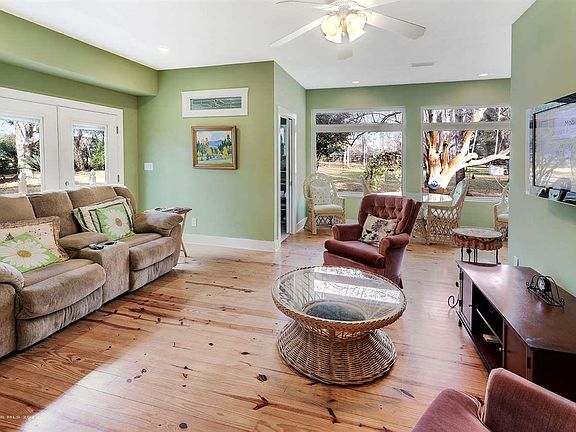 Completely remodeled with HUGE additions in 2006. Front part of house is original and all rooms feature stunning heart pine. The front living room has beautiful exposed timber beams above head. The kitchen and dining room open up to the 2nd living area and have vaulted ceiling and lots of windows with plantation shutters. Tons of cabinet storage in the kitchen as well as a nice sized walk in pantry. 2nd living area has recessed lighting, large windows overlooking the acreage behind the house, and french doors leading to an open porch. Upstairs features master bedroom, master bath, and loft. The master bedroom has 2 spacious walk in closets and a balcony with an electric awning. Double car garage, 2nd living area, bathroom, laundry room, and entire upstairs was all added in 2006. AC was installed in 2006. Roof was replaced in 2006. Mature trees cover the landscape of this property. Ample garage space on side of house for storage and there are two wells on the property. What a rare opportunity!