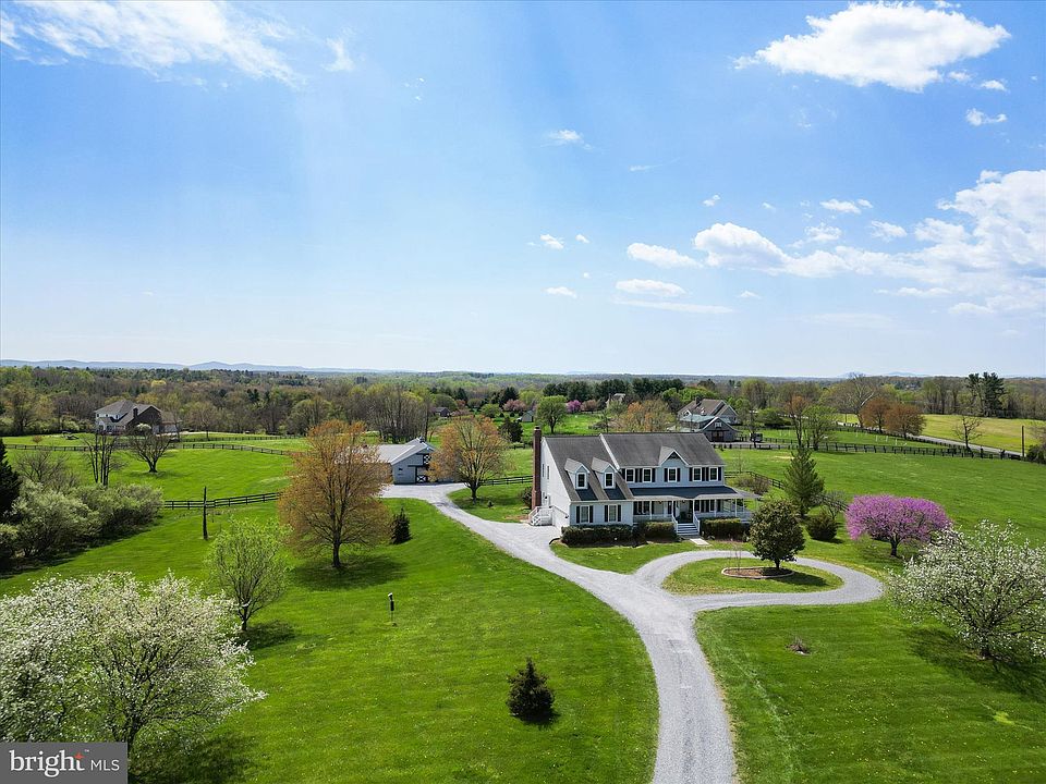 Welcome to this stunning horse property! This gorgeously renovated property in Purcellville sits on 10.75 acres and features lushly landscaped grounds, a circular driveway and a stately wrap-around porch and patio, both with views of the Blue Ridge Mountains. Serenity instantly washes over you as you drive through the stone pillars and meander down the long driveway. The owners recently poured a new circular driveway and it is a showstopper. Follow the long driveway to your 6 stable barn, tack room, heated wash rack and oversized garage/workshop. Have you ever dreamt of homesteading? This property has ample space for gardens, additional outbuildings like a greenhouse, and plenty of paddocks for a variety of livestock. This home features 4 bedrooms, 2.5 bathrooms, and 3512 square feet. The entrance to the home is welcoming and filled with natural light. The office is located directly to your left. There is plenty of space to use this room as an office, playroom, or main level guest bedroom. Head into the formal living room which the owners used for their grand piano. Walk directly to the formal dining room which features a beautiful chandelier and brand new French doors out to the deck with soaring views. Head into the kitchen which has been completely renovated and is just beautiful to behold. The two-tone painted cabinets are accompanied by brand new stainless-steel appliances, a wine fridge, brand new Quartz counters, brand new backsplash, a farm-house style sink, large window overlooking the property, and a walk-in pantry. The kitchen has plenty of room for a large table overlooking the property and stable which is accessible through brand new French doors. Off the kitchen is the spacious family room featuring a fireplace. There is a separate laundry room which has its own entrance, which is perfect for farm living. There is also a Tesla charging station in the garage. Head upstairs to four large bedrooms. The gorgeous primary suite features a separate sitting room/office/dressing room, two walk-in closets, and a large bathroom. This stunning newly renovated bathroom includes two sinks, a separate shower and soaking tub. The large window in the primary bathroom overlooks the property and allows so much natural light into the bathroom. The hall bathroom has also been beautifully updated with new flooring and fixtures. Each room is well appointed and are well sized bedrooms. The lower level is unfinished and ready for your vision. It features a walk-out entrance and could be developed into a family room, theatre room, guest room, bathroom, and more. Purcellville is bucolic horse country with all its charm and scenic views. The town is very involved in the arts. It is conveniently located 35 minutes from Dulles Airport, 25 minutes from Leesburg, 10 minutes from downtown Purcellville, and just 3 minutes from the Philomont General Store. The Philomont Store, situated on Snickersville Turnpike (one of Loudoun's scenic byways), offers groceries, fine wine and cheeses, local products, & even some local crafts. It also houses the local Post Office. Head 10 mins to Belly Love Brewing Company for some good local beers. You are a short drive to many amazing, local restaurants, the amazing golf course at Loudoun Golf & Country Club, and so many wineries and breweries! Improvements: New kitchen appliances and faucet, 2024; New counters and backsplash, 2024; New lighting fixtures, 2024; Freshly painted throughout, 2024; New French doors (2), Laundry room door, and Windows, 2024; New exterior porch lights and motion lights, 2024; New door knobs, 2024; New bathroom floor, 2024; New driveway gravel, 2024; New backwash filter added to water-softening system, 2021; New AC both zones, 2022; New furnace upstairs, 2022; New April Aire main-level Humidifier, 2023; Replaced four septic drain header lines in 2017 and in 2023, a new septic pump alarm and float.