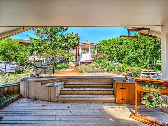 Immaculate 2188 sq ft rambler with 3 large bedrooms, 2 3/4 baths and huge laundry ROOM with tons of storage. Gas fireplace in great room & woodburning stove in living room. .48 acre with RV hook up parking area, driveway to rear of property handyman's shop, carports and bonus structure! Charming, private terraced yard with water feature, gazebo & covered deck for the ultimate in back yard living and entertaining. Great sun exposure for gardening. Appliances stay. Minutes to I-5 & Mt. Vernon.