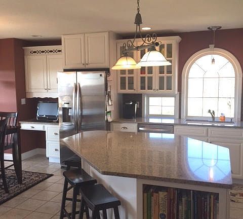 Location, Location, Location! 4.06 Ac just outside of town, paved hwy, water dist, Ameren gas & elec. 4 BRs w/ w/i closets, 3.5 BAs, 2 Family Rms, dbl sided frplcs. Recent hdwd, granite, light fixtures, roof & garage doors 2015. Very spacious main level w/Master Suite, upper level w/2 BRs & BA, lower level w/Fam Room, conform BR & full BA. 3 garages on main & 1 garage below. Huge patio & Deck.