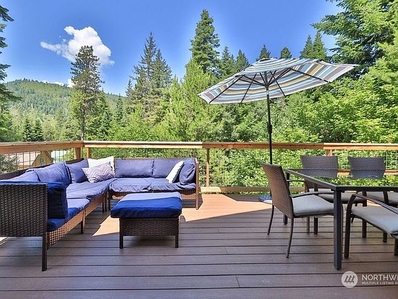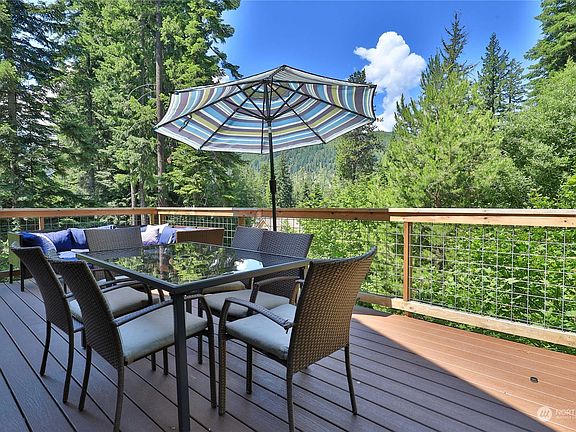 Short Term Rental Opportunity, this furnished 2BR 2Bath cozy & charming cabin is located minutes to great recreation. The main level offers open living with cozy wood stove, kitchen with eating bar & dining area. Beautiful views and abundant natural light. Bedroom on main & upper level loft bedroom. Bathrooms on both floors. A spacious basement garage to store all your toys. Enjoy the Hot Tub for relaxation. Just minutes to Lake Wenatchee State Park; close to Stevens Pass, X-country ski trails & rivers for year round outdoor adventures. 25 minutes to Leavenworth for shopping, dining, wineries, breweries & riverfront trails.