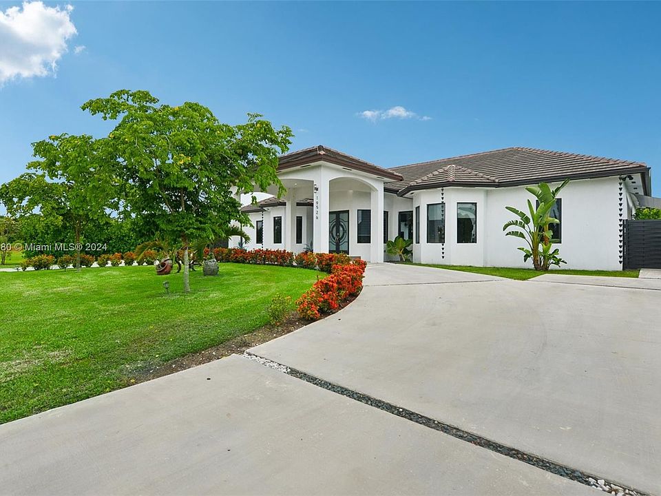 Welcome to your new custom luxury home, built in 2021, with nearly 3,000 sq. ft. of living space on an oversized lot, you will fall in love as you enter the foyer with its 12' ceilings, home features a exquisite kitchen equipped with modern cabinets, quartz countertops, an eat-in island, and top of the line SS appliances. Each of the bedrooms has an en-suite bathroom, and the principal bedroom boasts a luxurious soaking bathtub. The home is both elegant and functional, with LED lighting, impact windows and doors, plus three separate A/C units for optimal climate control. Fenced-in backyard with open lanai and room for a pool, bring all your toys, room for cars, boats, & an RV. Currently a 3/2 plus an in-law suite, this home is perfect for multi-generation families or investors. No HOA.