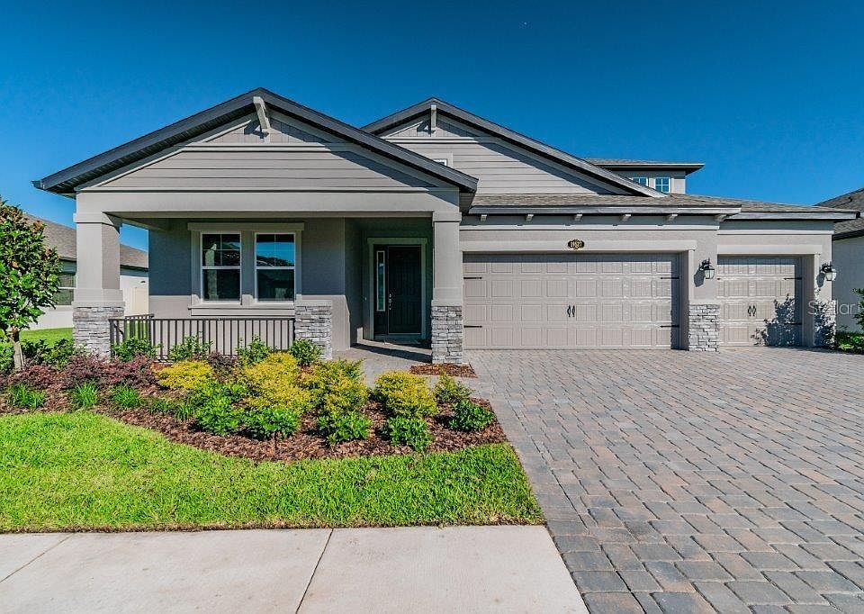 Under Construction. As you step through the front door, you will be invited in through the foyer filled with natural lighting provided by the beautiful sidelight. As you continue through the elegant arch walkway you will find two bedrooms with a conveniently shared bathroom situated right in between them. The foyer then opens up to a massive great room with adjoining kitchen. The great room boasts triple sliders to let the party head outside to the lanai for some outdoor entertainment. The kitchen will put you in awe with the huge island and wrap around granite countertops and 42" cabinets: plenty of space for storage! Plus, with a café area right next to the kitchen, enjoy breakfast or an evening snack with a view that looks out towards the patio. On the opposite side of the home, quietly tucked away, are a half bath and private study with optional double door entry. Also on this side of the home is the owner's suite, or should we call it, your sanctuary. Inside the owner's suite you'll have an enormous walk in closet. The spacious owner's bathroom features dual vanities, a large walk-in shower, and a private toilet. If all of this wasn't enough, you'll find the bonus feature on the second floor. Head upstairs to the spacious bonus area and the final bedroom. Contact us to view this home for yourself today!
