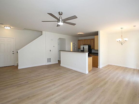 Ready to move in........townhouse has been completely updated with new paint, luxury plank flooring, baseboards, bathroom updates, (adult height toilets, faucets, vanity top in full bath, new ventilation fan and new shower control) new light fixtures. Open floor plan on main level and large family room/office/bonus room on upper level. Laundry located on 2nd floor. Large master bedroom complete with walk in closet (8 x 6). Patio door off dining/great room opens to private patio. Kitchen has abundance of 42 "wood cabinets, refrigerator, microwave, new electric stove and dishwasher. Large 2 car garage is an added feature. Monthly dues are $130.00 with auto pay and include lawn care, exterior building maintenance/insurance and snow removal.