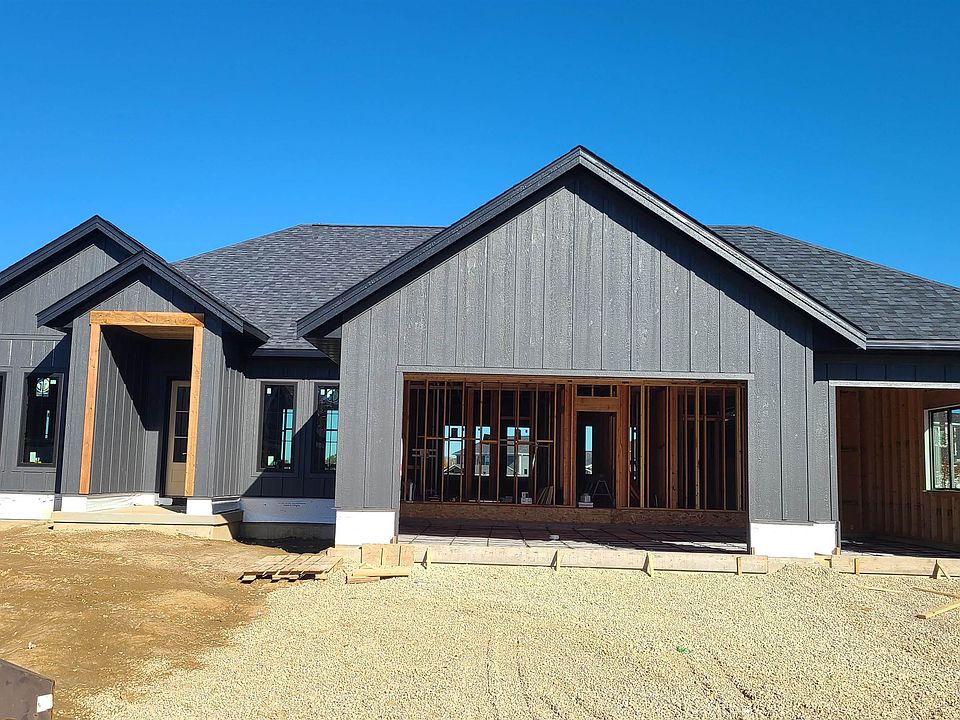 New Nadermann Development home. Ultra modern home, 3400' finished. This home is an awesome new rear walkout split bedroom design with 5 Bedrooms, 3 full Bath, 1 half baths and 3 car garage. It will feature large island style white kitchen by Smith Cabinets with glass toppers, granite/quartz tops and tiled backsplash, hidden pantry and SS appliances. Other upgrades include 11' and 9' ceilings and treys throughout, white trim and solid core doors, upgraded lighting package, gas fireplace w/custom built in cabinets, oversized windows w/transoms, Energy star mechanicals, whole home audio system, Stone/board & batten front, tiled master shower, large covered maintenance free deck, lots of hardwood, all smart siding (no vinyl), entry lockers and much more. Lower Level will be completly finished with 10 x 12 bar room , 18 x 29 family room w/kitchenette, 2 bedrooms, Garden garage and lots of storage. It is located on a nice walk out lot. Completion in spring 2022. Interior pics are of a similar home.