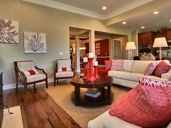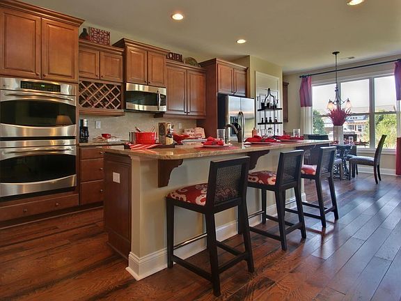 Fully decorated designer model home with tons of open concept living space. Kitchen comes equipped with a large island with breakfast bar, Lapidus Tiberious granite countertops, Jamison Maple Glazed cabinetry with wine rack, stainless steel double convection wall oven and Butlers Pantry with additional granite countertops and cabinetry. Kitchen opens to the Great Room which offers a gas fireplace and Blythewood Hickory wood flooring throughout. The Owner's Suite features coffered ceilings, french door entry to the En Suite, dual sink marble vanity and frameless glass enclosed shower. Bonus Room provides additional living space. Exterior highlighted by metal roof over front porch, brck face and HardiePlank siding.
