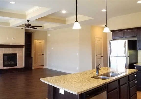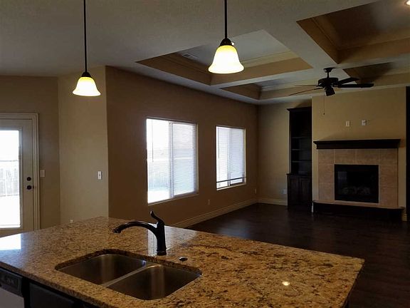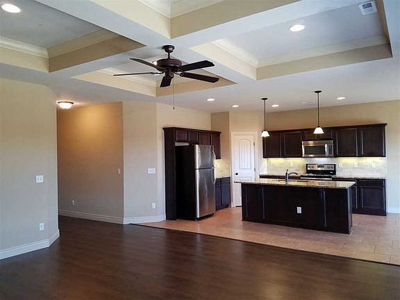 For rent -Beautiful 4 bed 3 bath home with 3 car garage. Spacious open living room with gas fireplace and built in book shelves. Dinning room that opens to patio. Kitchen with granite counter tops, island bar that provides lots of seating. Walk in pantry. Master bedroom features coffee bar, large bathroom with spacious walk in closet. Master bedroom opens to the back yard patio. There is another bedroom with a full private bathroom. Large laundry on the main floor. There is also a spacious concrete storm safe room that also doubles as storage room. Nice private fenced back yard with large patio. Mowing is provided. Can be a lease purchase option.
