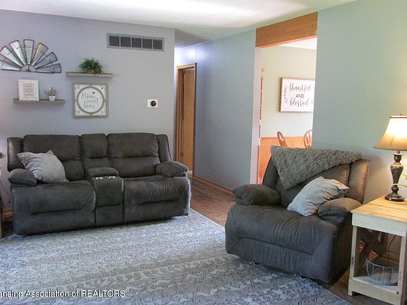 Charming 4 bedroom ranch on pretty lot. Many nice upgrades including front & back decks. Newer floors & fresh paint. Spacious family room with pretty fireplace. Primary BD accesses full bath. Newer appliances stay! Play set & chicken coop included. Garage is mechanic's dream. Basement is open, clean & offers lots of cabinets, counters for crafts & abundant storage.
