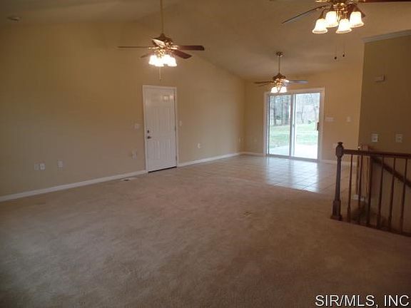 Almost an acre of land and a newer ranch style home just outside of Highland. Oversized 24 x 30 garage offers room for larger vehicles and storage. Vaulted ceiling in living room, opens to the dining area and kitchen. Sliding glass patio doors lead out to a covered porch. Large level back yard offers lots of room for outdoor activities. Lower level family room with egress window has a tiled area that is roughed in for a wet bar. One of the bedrooms is set up to be used as an office. Additional full bath and bonus room also downstairs. One year HMS home warranty included.