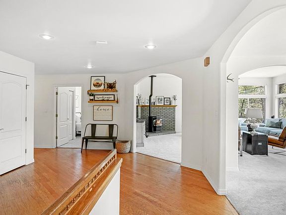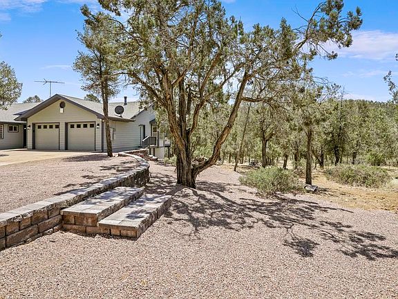 5.21 acres of land, backs National Forest, no HOA or restrictions! Great potential for an Airbnb. The home is a 4 bedroom 3 bathroom with 2 master suites.  As soon as you walk into the home there is a large foyer. The living room has large windows to see the beautiful views and forest that surrounds you. There is a formal dining room as well as a breakfast nook. Off the breakfast nook there is an enclosed porch and a view deck to take in the peacefulness. The kitchen is large and great for entertaining. Upstairs there are 3 bedrooms and 2 bathrooms and the laundry room. Downstairs there is the 2nd master suite that is currently being used as a bedroom and game room/living room. When you walk outside from the 2nd master suite there is a gorgeous new paver area with artificial turf. Plenty of room for outside fun! The owners also made a frisbee golf course throughout the property. Walking up the new paver lined path you will come to the 2-car garage shop and rv pad. The home has a great producing private well. The property has culverts and drainage around the home and the property was recently fire wised. Keep an eye on wildlife or work from anywhere on the land with whole property wi-fi, Starlink internet equipment included. You don't want to miss all this home has to offer!