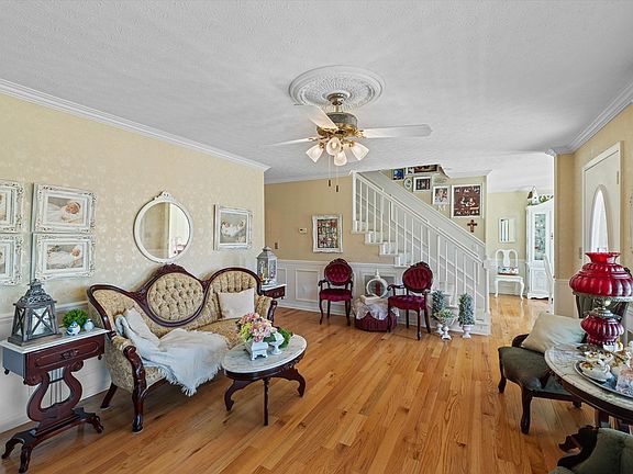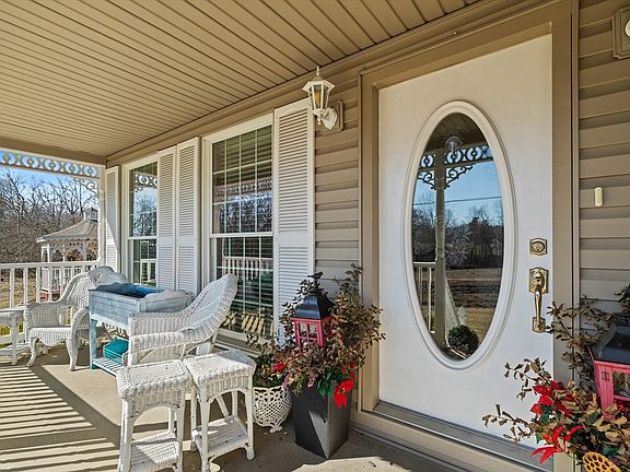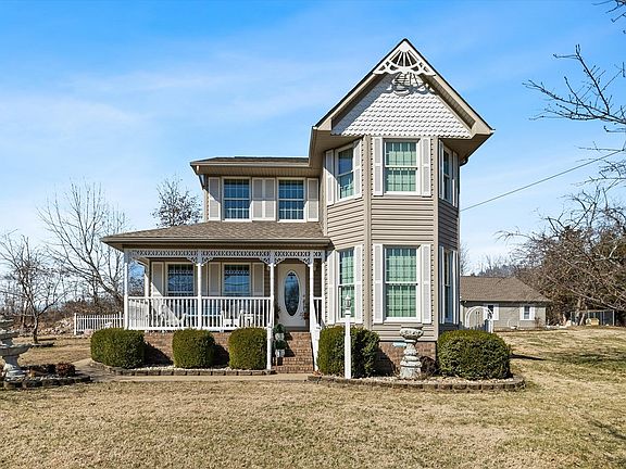 Welcome to this charming 3 bedroom, 3 bath victorian style home located in a peaceful country setting surrounded by mature landscaping and a manicured lawn. Enjoy the architectural details, decorative woodwork and welcoming porch of this classic design built in 1988. Extremely well maintained with new roof shingles, tilt windows, HVAC, hardwood flooring and quartz countertops in the last 5 years plus 3 yr old appliances. The interior features a light and bright kitchen, dining room with bay windows, spacious bedrooms and a lovely sitting room off of the primary bedroom. Entertain or relax on the screened back deck or nearby covered pavilion. The detached garage offers plenty of room for hobbies or projects plus a full floored upper level for storage or future renovation. Also included is a Storm Shield storm shelter. Contact Ginger at (270)871-1514 for more details.