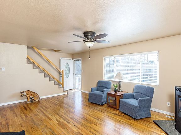 - Flooring- Vinyl, Flooring- Carpet, Walk-in Closets, Flooring- Tile, Fireplace- Wood, Vaulted Ceilings, Flooring- Hardwood, Pellet Stove, Ceiling Fan(s), Smoke Detectors, Blinds