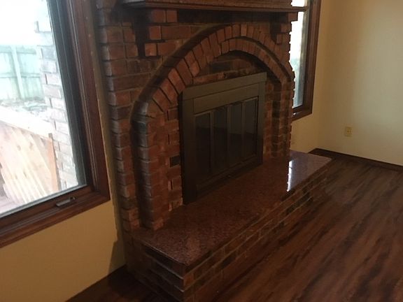 This pretty home's outside entry is all brick with shutters around front door. Lovely Spanish design. Stucco Front! Lush shade trees surround the property. Mature landscaping. This home has a large living area in basement with a brick fireplace and is set up for wet bar! Large room with closet adjoins bath in basement as well. The double garage is on the lower level and entry from the garage is through the large living area in basement. All baths are newly renovated. There is a master suite with another 2 bedrooms and bath upstairs. Hardwood floors in bright kitchen and living room upstairs. Living room upstairs has a wooden cathedral ceiling complete with brick fireplace. Lots of windows! All newly painted exterior and interior! Large deck in back through sliding glass doors. Large fenced in back yard. Could be divided into two yards--perhaps an area for dogs to run? Lovely neighborhood. This home is offered with a Rent-to-own 3.5% option fee and rent of $1300.00 or owner financing is available with 10% down. 3 BR 3 BA with non-conforming 4th bedroom downstairs. Kickapoo schools! - Call NOW! Rent to Own or Owner Financing