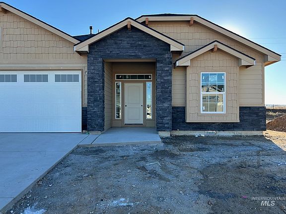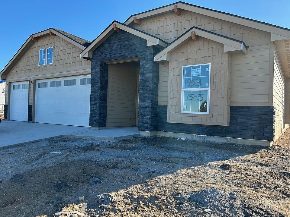 The Stanstead by Young American Homes, 10 ft. ceilings in the open great room area, split bedroom floor plan, beautiful rustic cabinetry, granite kitchen island, stainless appliances, gas range, gas fireplace, and abundance of windows, 3 car garage, covered back patio & front covered porch, partiallt fenced, full front & back sprinlers with front landscaping to community standards!