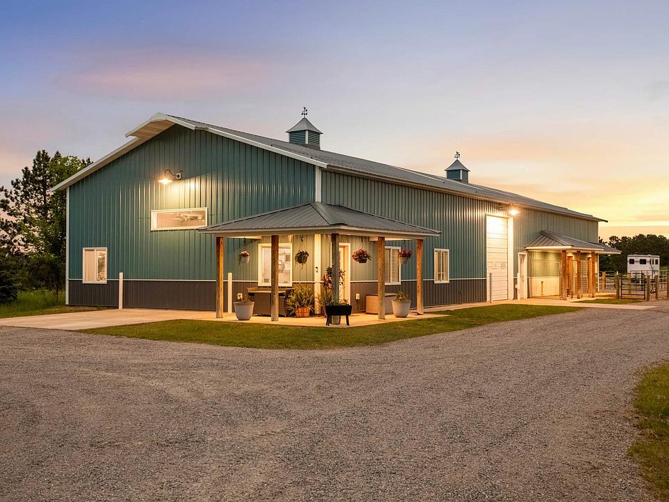 This 2 bed, 1 bath "Shouse" is sitting on an amazing 26 acre piece of land. Septic is ready for your 5 bed, walk out dream home as well. Lighted 75x160 outdoor arena (clay base with washed sand), 1 dry lot and 2 pastures. Property is making money in CRP as well, approx $1500/year. Land can be taken out of CRP for a fee, it was put in about 1.5 years ago. Drive up your private maple tree lined driveway, past the honey crisp apple orchard, around the 25' pines that shelter the homestead from the road and take in the views of the private Lake Maria on the walkout side. Additional lean to for tractor, implement, hay storage. 2 stalls, 1 tack room and wash stall (will be finished off prior to closing) have real brick fronts and cottage lights. Storage above stall and tack/wash area. Extra cold storage for cars, boats and the toys. This is truly a once in a lifetime piece of property.