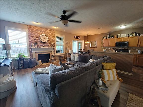 This AMAZING home is perfectly decorated and boasts a split floorplan w/ 3Br/2BA in the desirable Lakes of Prarie Crossing. Open concept living area with a stone fireplace, and raised ceilings. Updated kitchen with w/breakfast island, title splash, and Samsung SS appliances. Newer flooring and deluxe plantation shutters throughout the home. BONUS is the amazing 4 Season Sunroom off the kitchen to give additional living space that leads out to the backyard. Outside you will enjoy the manicured landscaping, fully fenced yard, irrigation system and storage shed.