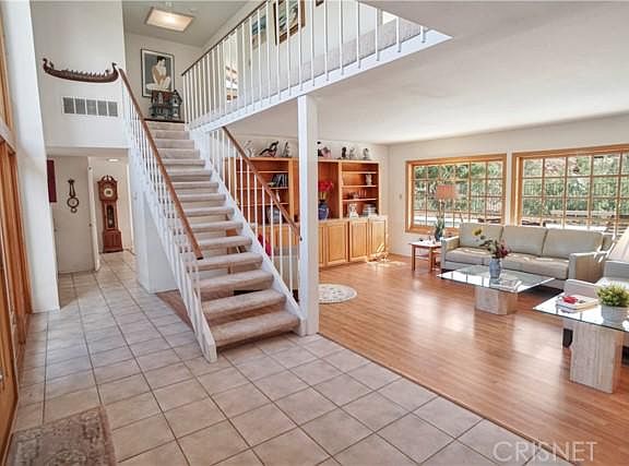 Location, Location, Location!!! Wonderful Porter Valley Golf Course View home with pool overlooking beautiful valley views, greenbelts and the 4th hole. This 2 Story features a gated courtyard, 4 bedroom, 2.5 baths with 2552 sq. ft. of light filled living space with dramatic high windows for tons of natural light and situated on a nice lot with neighbors on only one side. Upon entry you will feel right at home and love the light filled floor plan with gorgeous wood trimmed dual pane windows (upstairs are all Pella windows), separate living room with built-ins, formal dine and family room with recessed lighting, wet bar and a cozy fireplace. The cooks kitchen boast views of the rear yard, custom cabinetry, pantry cabinet, granite counter tops, and a convenient breakfast area. Smooth ceilings are offered through most of the home, and all the bedrooms are oversized with good closet space. The primary suite offers more amazing views, vaulted ceiling, his & her closets and a private en suite bathroom. The rear yard is perfect for relaxation or entertaining with a great covered patio and low maintenance landscaping. Situated in one of Porter Ranches most desired neighborhoods and within Castlebay Lane & Granada Hills Charter schools, plus close to parks, hiking, shopping and dining at the new Vineyards at Porter Ranch and offering easy freeway access. Home has been well loved by the original owners and it shows.