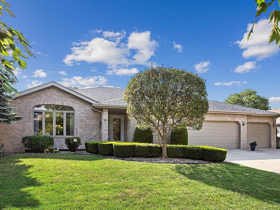 EXPANDED 3 STEP RANCH IN THE SUBURBS. BRICK 4 BEDROOM 2 1/2 BATH IS SITUATED ON AN UNFINISHED BASEMENT WITH 9 FOOT CEILINGS AND PLENTY OF STORAGE SPACE IN THE CRAWL. A CONCRETE DRIVEWAY LEADS TO A 3 CAR ATTACHED GARAGE THAT IS COMPLETELY DRYWALL FINISHED AND PAINTED. A WELCOMING COVERED PORCH BRINGS YOU TO THE COZY FOYER. INSIDE IS A FANTASTIC LAYOUT WITH THE 4TH BEDROOM UPFRONT WHICH IS PERFECT FOR GUESTS OR A HOME OFFICE. THE CEILING SOARS IN THE SPACIOUS LIVING ROOM ALONG WITH NATURAL LIGHTING FROM THE ROUNDED TRANSOM WINDOW. ENJOY ENTERTAINING IN THE WONDERFULLY DESIGNED HOME. THE DINING ROOM STRETCHES TO THE LARGE KITCHEN AND FAMILY ROOM WITH A CATHEDRAL CEILING FEATURING A WOOD BEAM AND GAS LOG BRICK FIREPLACE. A CENTER BREAKFAST ISLAND IS THE FOCAL POINT IN THE EAT-IN KITCHEN. ALONG WITH A BUTLER PANTRY AND SLIDING DOORS LEADING TO A BRICK PAVER PATIO. THIS KITCHEN HAS LOTS OF CABINETS AND COUNTER SPACE. JUST A FEW STEPS UP BRINGS YOU TO THE OTHER 3 BEDROOMS WHICH ONCE AGAIN MAKES FOR A GREAT DESIGN. THE MASTER BEDROOM COMES WITH A WALK-IN CLOSET, STANDARD CLOSET, FULL BATH WITH SEPARATE SHOWER AND JACUZZI TUB. MOST OF THE ROOMS HAVE BEEN FRESHLY PAINTED LESS THAN 2 YEARS AGO. CARPETING WAS JUST REPLACED THIS SUMMER. THE TEAR OFF ROOF WAS REPLACED 2 YEARS AGO. KITCHEN FLOORING IS 5 YRS OLD AND ALL APPLIANCES ARE 5-6 YEARS OLD. VERY DESIRABLE RANCH HOME IS LOCATED IN MOKENA SCHOOL DISTRICT AND LINCOLN-WAY CENTRAL HIGH SCHOOL. SCHEDULE A SHOWING TODAY!