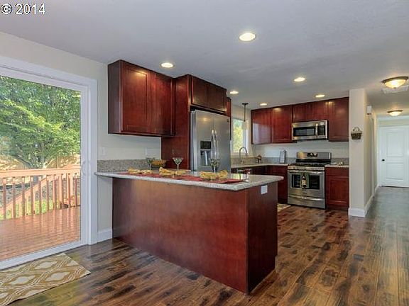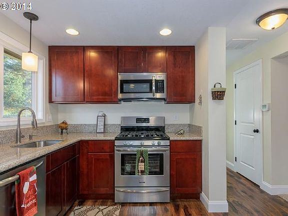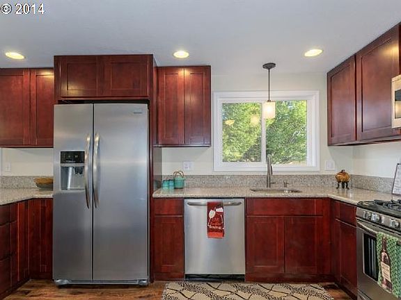 UPDATED AND REMODELED. New kitchen w/cherry cabinets, granite counters, smudge-proof stainless steel appliances. All new double-pane vinyl windows. All new flooring, trim, paint, lighting fixtures, plumbing fixtures. Bathrooms all updated. Updated Wirsbo plumbing. Huge fenced yard, back deck, front covered patio/entrance to keep guests out of rain.All work permitted and performed by licensed professionals.
