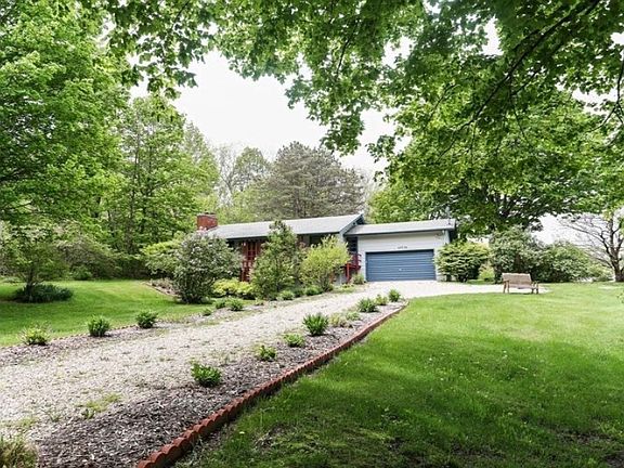 Step into seclusion with this quiet, 2 acre country retreat surrounded by mature trees, and shrubbery! The main floor includes 3 bedrooms, a comfortable living room with a fireplace, and the kitchen open into the dining room. The full walk out basement doubles the living space with a den including another fireplace, kitchenette, office, and an additional bonus room! Close to all the shopping, restaurants, and entertainment of Harbor Country with all the privacy of the country!