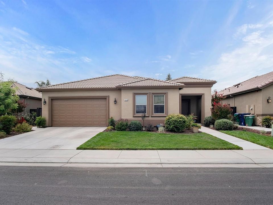 Single Story 2328 sq.ft. home on 6600 sq.ft. lot located in the Hacienda Subdivision of Hilmar. This home features 4 bedrooms, 2 baths and 2 car garage. Spacious open floor plan w/dual sided gas fireplace in the living room and dining room. Stainless built-in Whirlpool appliances, upgraded granite kitchen counters, upgraded shaker style cabinets in espresso stain, island,breakfast bar and walk-in pantry. Master suite with outside access. Master bath with dual vanities, separate tub and shower, large walk-in closet, and linen closet. Wood like tile flooring in the entry, family room, dining area, kitchen, baths, and laundry room. Newer carpet in bedrooms. E-stone marble bath vanities and surrounds. Inside laundry room w/ deep sink and cabinets. Custom Bali blackout window shades. Finished garage with professional floor coating and a tankless water heater. Backyard is beautifully landscaped with a large pergola, large shed, and automatic sprinklers. Move-in ready!